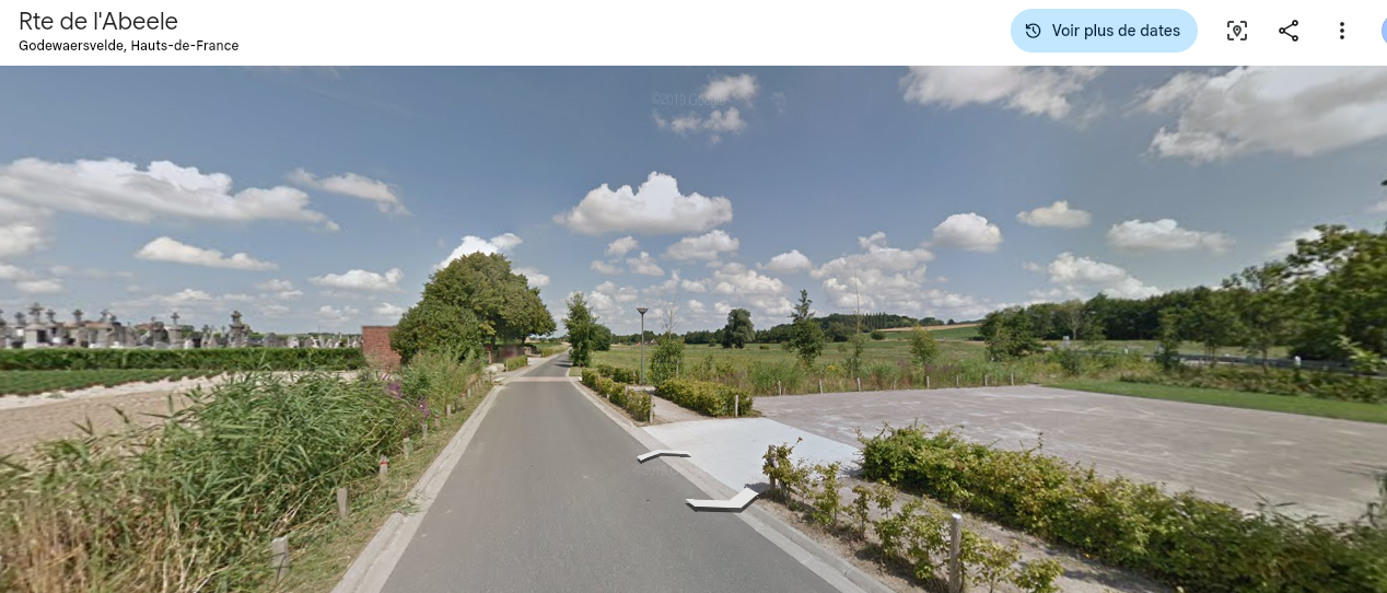 Le cimetière est bien “route de l’Abeele” comme dans Via Michelin.